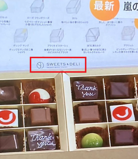 特定班によると、今回配られたチョコレートは、パレスホテル東京のペストリーショップ『スイーツ&デリ』の品(※特注品につき同じ商品の販売は行われていない模様)だそう。